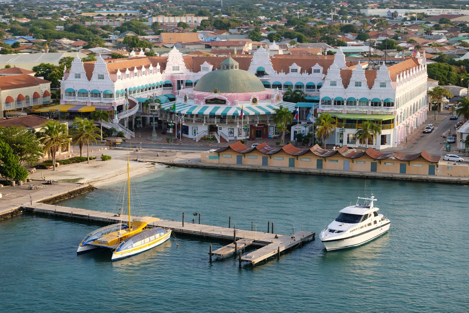 • Slenteren door Oranjestad met kleurrijke koloniale gebouwen, malls (Renaissance Mall, Royal Plaza Mall) en de bekende “I Aruba”.
